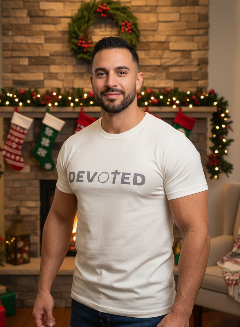 This clean design elegantly displays the crown of thorns and a simple cross. The strength of a single word is highlighted in our DEVOTED apparel, communicating personal value and deep meaning.